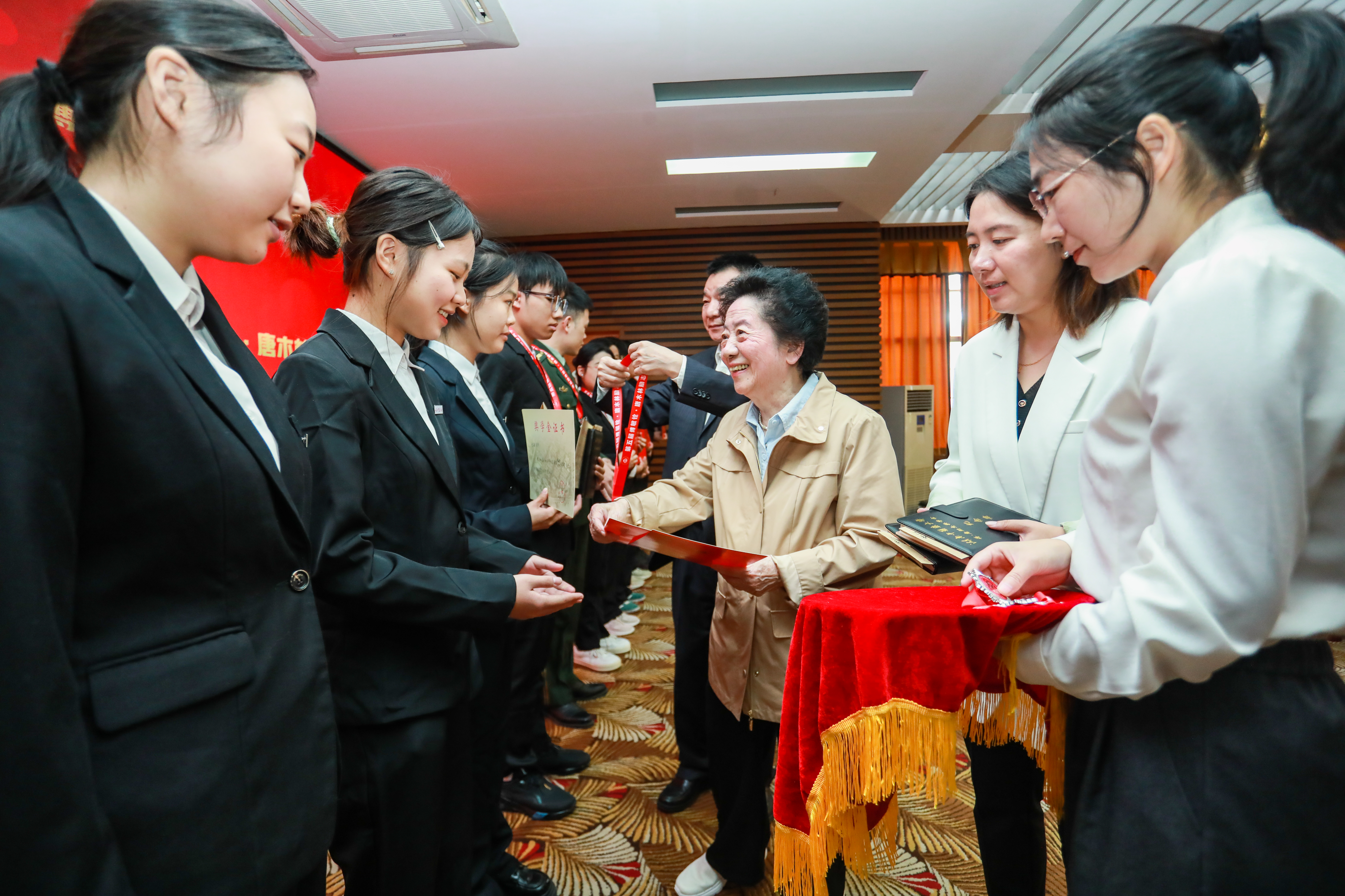 唐木林强调,正因为有79级、81级等众多校友的鼎力支持,“傅敏铨·唐木林”励志奖学金项目才能做大做强,她寄语新时代的大学生要立志听党话、跟党走,朝着党指引的方向,学有所成、投身社会,实现自我价值、赢得尊重,不辜负母校的悉心培养,努力把自己锤炼成建设社会主义现代化强国迫切需要的创新型、复合型的拔尖人才。最后,她祝愿学校以建校90周年为新起点,创造更加辉煌的明天。