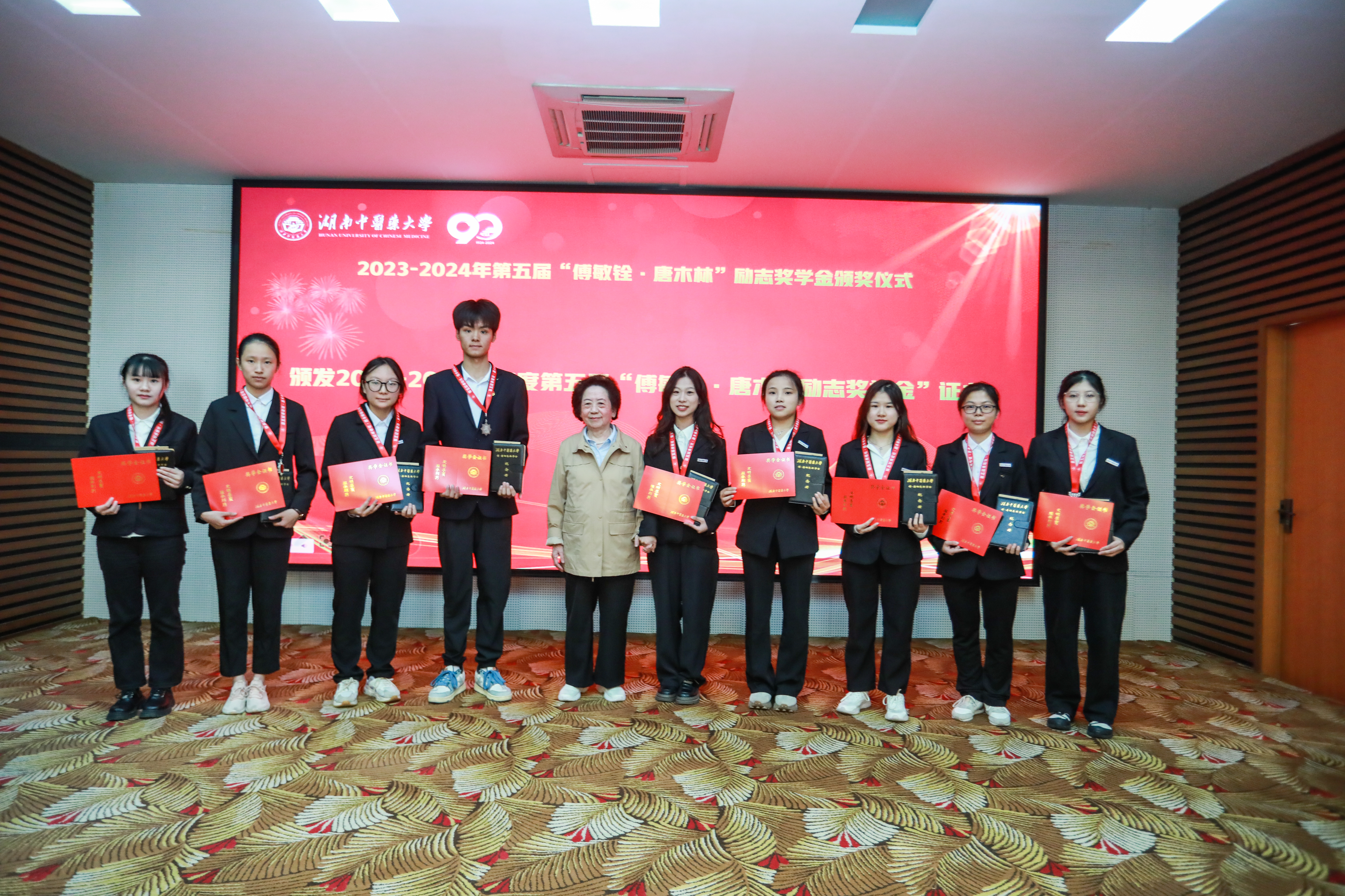 会上,廖菁宣读了《关于颁发湖南中医药大学2023-2024学年度“傅敏铨·唐木林励志奖学金”的决定》。