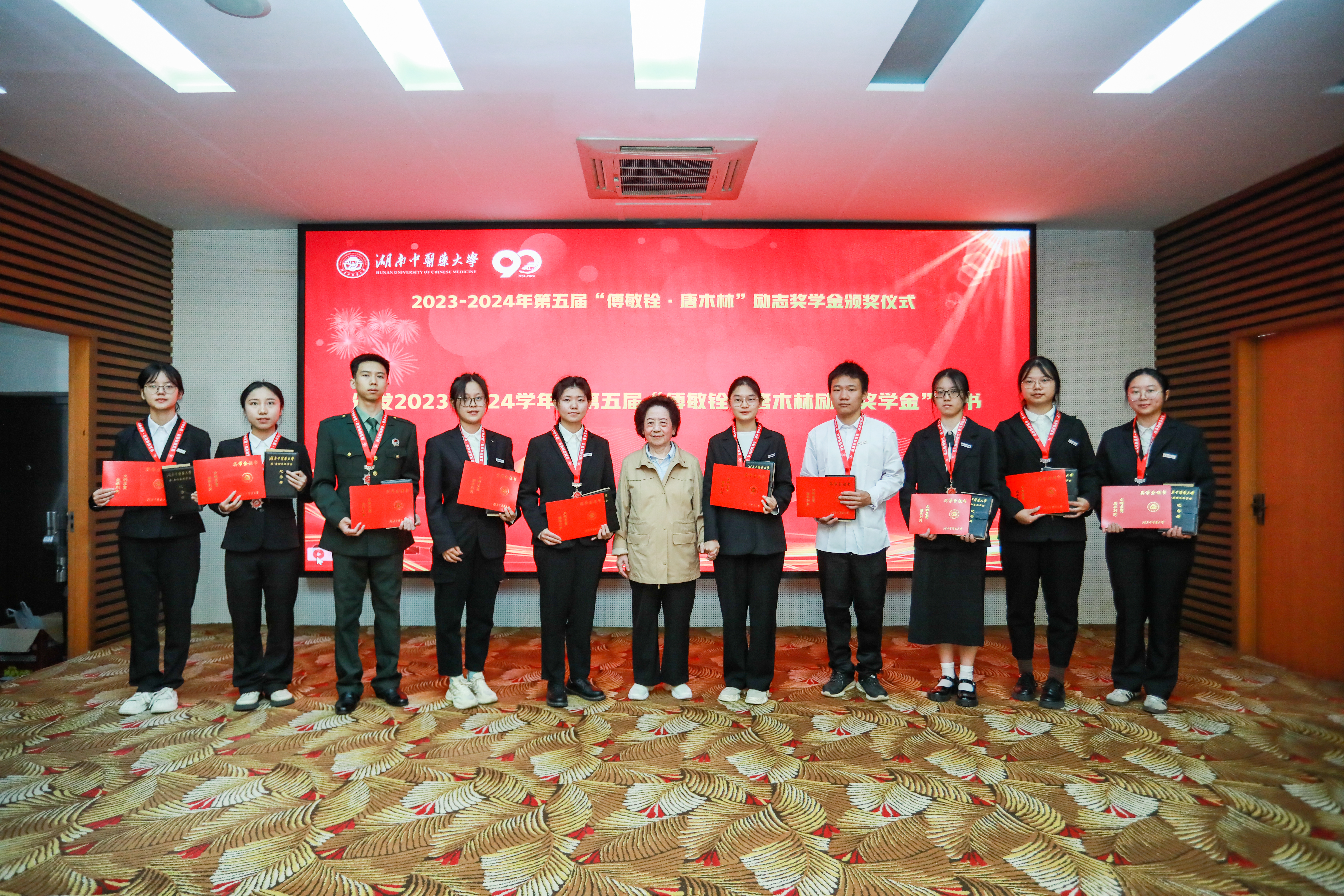 10月25日上午,第五届“傅敏铨·唐木林”励志奖学金颁奖仪式在一办公楼一楼会议厅举行。我校离休教师唐木林、校长易刚强,湖南省委老干部局二级巡视员彭小平,我校原任党委书记秦裕辉,杰出校友王衡新、董后上、张钢、戴征及30位第五届“傅敏铨·唐木林”励志奖学金获得者齐聚一堂。仪式由副校长廖菁主持。